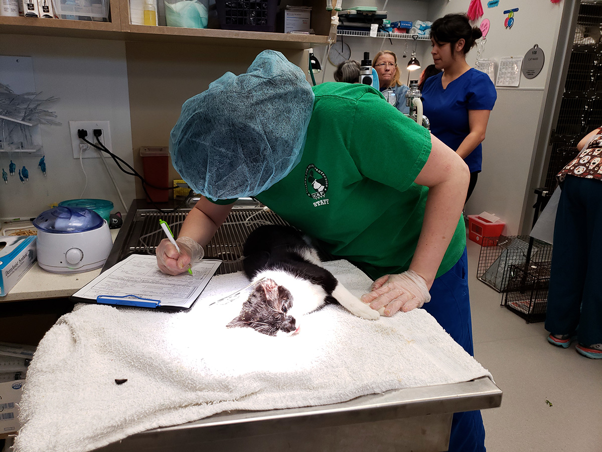 Launched in 1995, World Spay Day is an annual campaign that aims to encourage people to save the lives of animals by spaying and neutering companion animals and feral cats. Although CAP always promotes spaying and neutering animals by providing free surgeries for feral cats when they are trapped and transported by community volunteers, on this day they focused their efforts on these two assisted living/retirement communities who were deemed as needing the most help within the shortest amount of time. Many of the cats they were caring for were not yet altered, and these two colonies were faced with exploding population numbers within the next 3-4 months as well as increased health risks over the years.