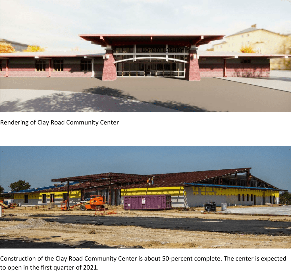 The new community center to replace Bear Creek, located on higher ground at Clay Road near Barker Cypress, is now halfway to the finish line and anticipated to be completed in the first quarter of 2021.