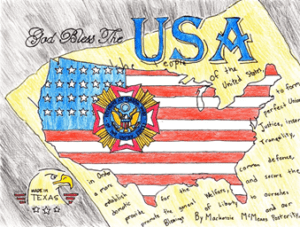 McMeans’s and Torres’s artwork is now being judged for the upcoming national competition at the VFW national headquarters being judged for the upcoming national competition. Winners of the National VFW Illustrated America contest will be announced the week of July 25 through the VFW Auxiliary National Organization Facebook page. Winners will receive a $100 gift card.