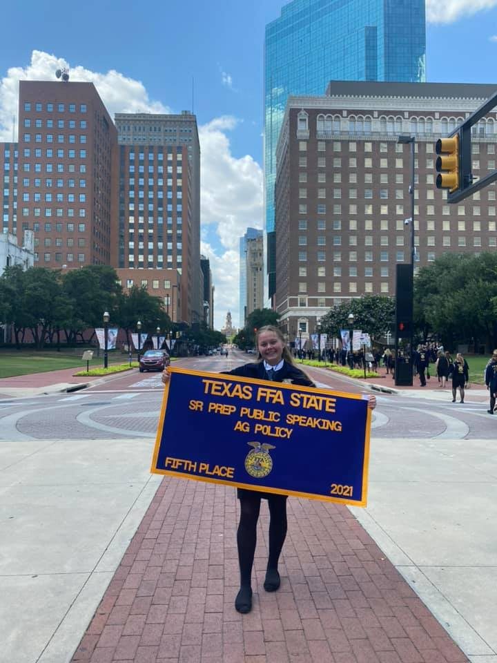 - Lauren Sapp, Cinco Ranch High FFA, 5th Place, Agricultural Policy Public Speaking