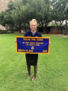- Elizabeth McFadin, Katy High FFA, 9th Place, Extemporaneous Speaking