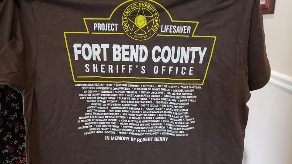 A t-shirt honors donors to Project Lifesaver through the Fort Bend County Sheriff’s Office (Fort Bend County Sheriff’s Office photo)