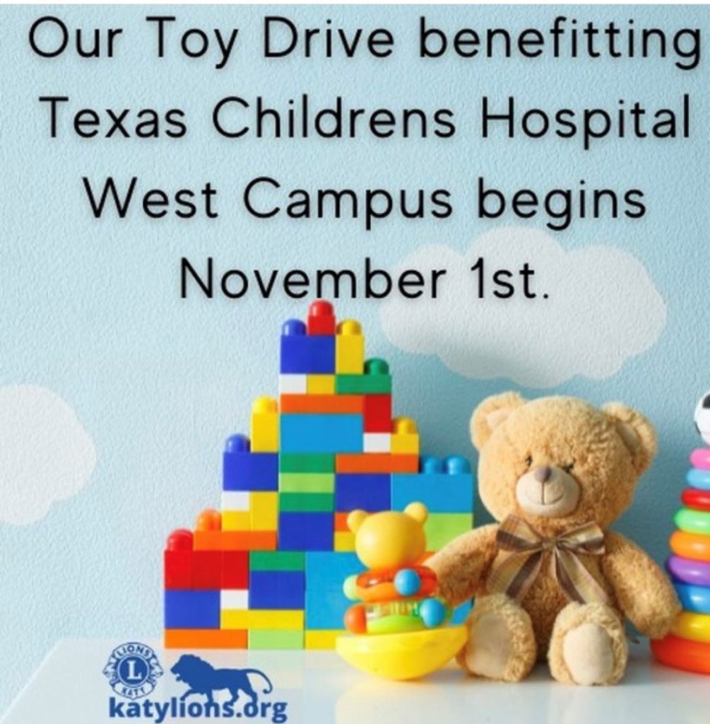 Every year, we collect thousands of toys to donate to the young cancer-fighting children at Texas Children’s Hospital’s West Campus. Starting November 1st, we’re doing it again. If you are a business owner, would you be willing to host a collection box in your location? We’ll be making an interactive map as well as producing flyers promoting the drop-off locations. Reach out to liondavid@katylions.org if you’re interested in learning more or hosting a collection box. We greatly appreciate it!