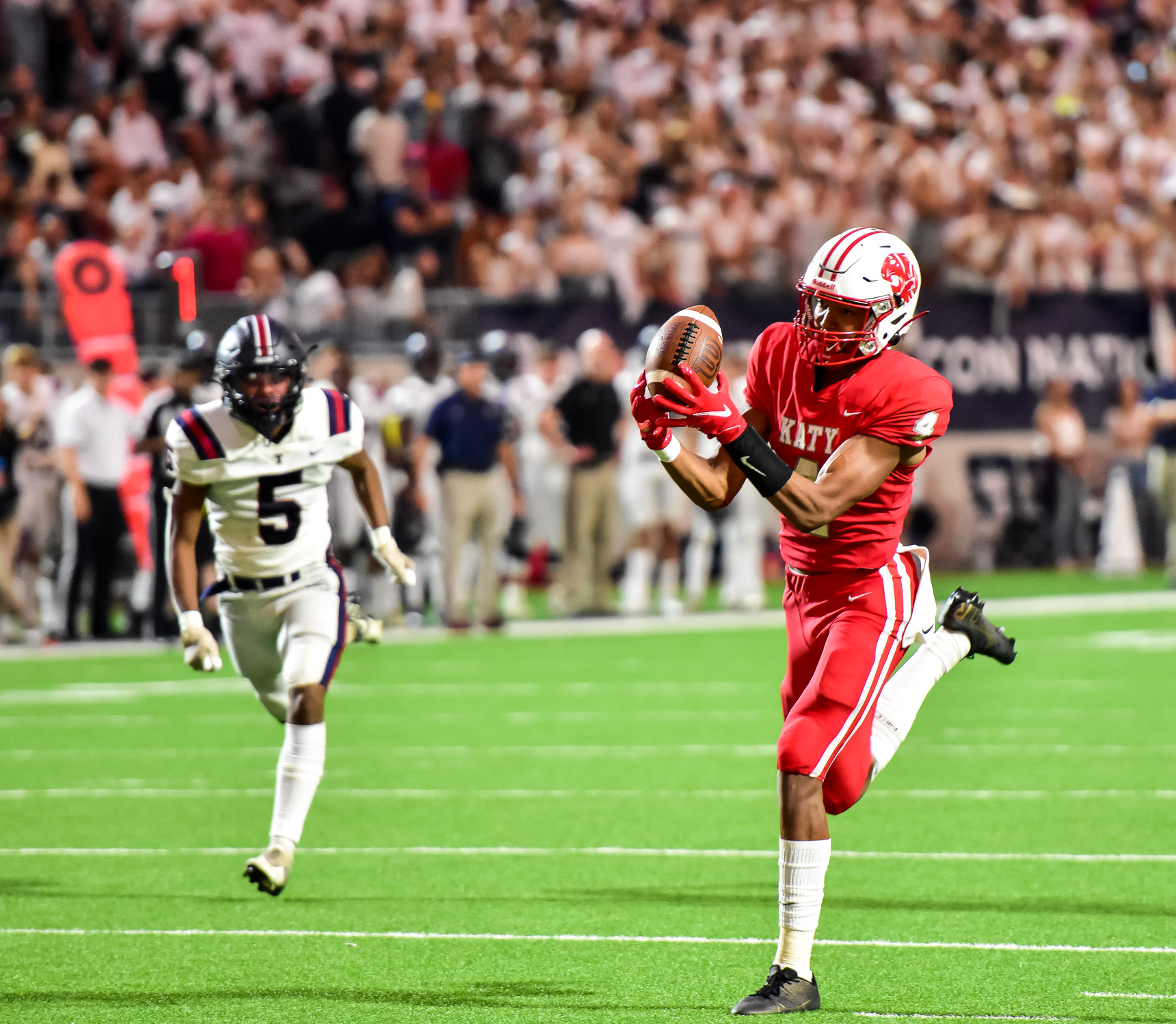 - Katy senior receiver Nic Anderson (4) hauls in a touchdown pass against Tompkins (photo by Terry Carter/UDPhotos.com)