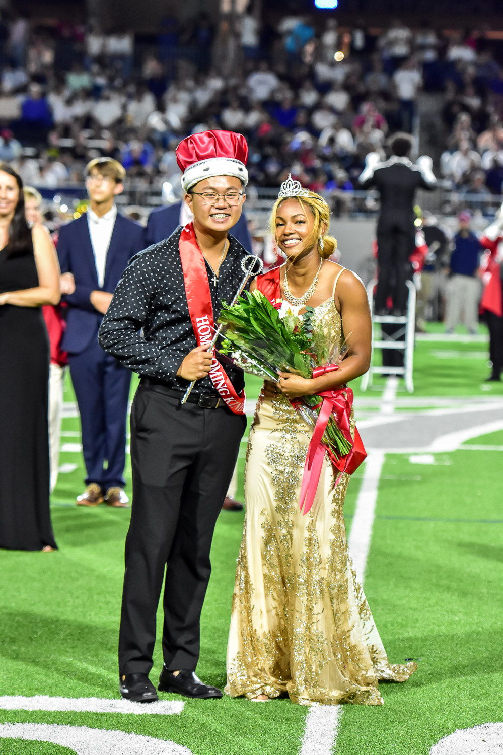 - Katy homecoming king Ethan Tran and queen Courtnie Welch were recognized during halftime of Friday’s District 19-6A football game against Tompkins. (Photo by Terry Carter/UDPhotos.com)