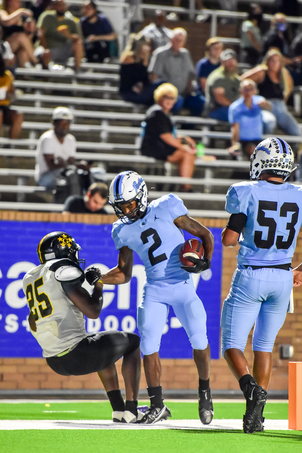 The Mustangs came back with their own score just before the end of the first half. It came on a 72-yard run by senior running back Michael Whitaker III.