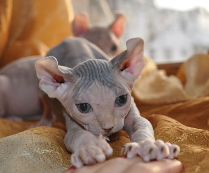 These cats have no wool, but the skin is susceptible (especially where there are folds), and there is nothing to say about the ears — it is strictly forbidden to touch them.
