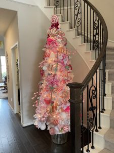 The Peppermint Tree, one of 13 expertly decorated Christmas trees now on display in Katy’s Cane Island