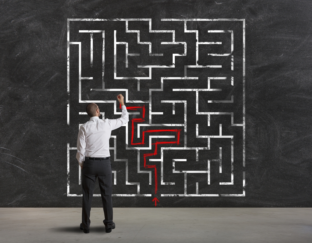 Businessman finding the solution of a maze