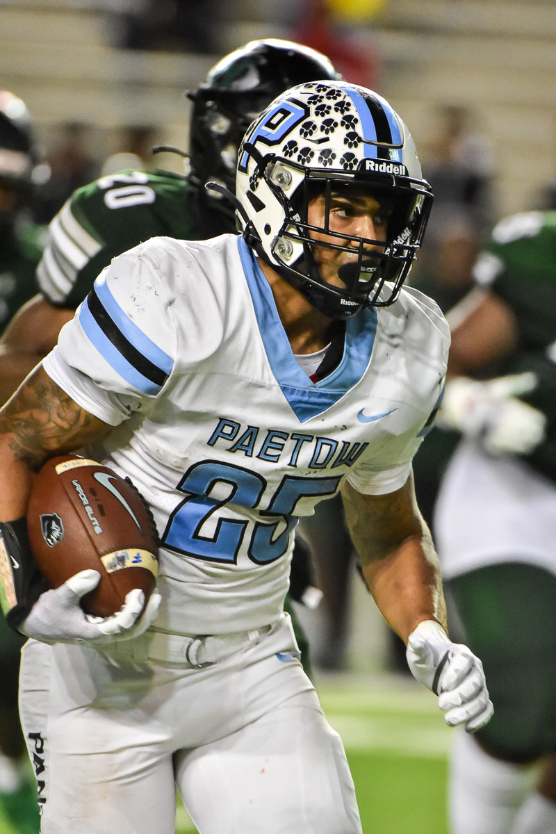• Senior running back Jacob Brown, who missed several games due to injury, elevated the Paetow ground game when he returned to action, rushing for an outrageous 346 yards (11.5 yards per carry) and five touchdowns against district rival Hightower in the state quarterfinal. After the game, his coach said Brown told him he could still do better.