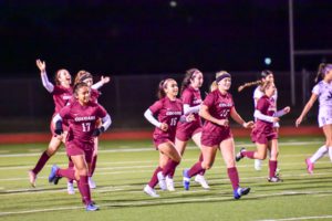 - Cinco Ranch players celebrate 1-of-5 goals on the night during a home match against Jersey Village.