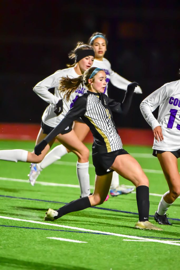 And with 2:45 remaining on Tuesday, College Station connected on a crossing pass that left Lady Warrior goalkeeper Maddie Mech 1-on-1 with a far post shooter only 20 feet away. The College Station goal was the decider in this contest, which leaves the Lady Cougars with a strong grip on the final playoff berth. But it’s not over yet.