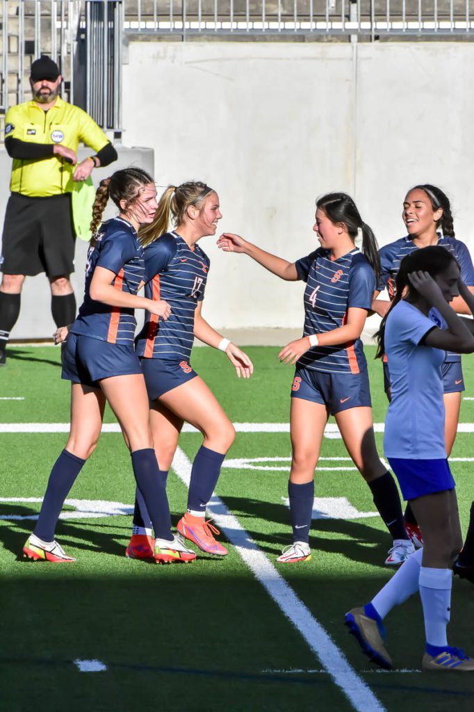 The 1-0 halftime lead held up as Seven Lakes First Team All-State, junior goalkeeper Maddie Rich posted another shutout with the assistance of dominant back-line defenders. Seven Lakes has now outscored opponents with 54 goals and by allowing only four goals this season. According to the Lady Spartan season schedule, Rich has posted eight consecutive shutouts since a 1-0 defeat to District 19-6A rival Tompkins.