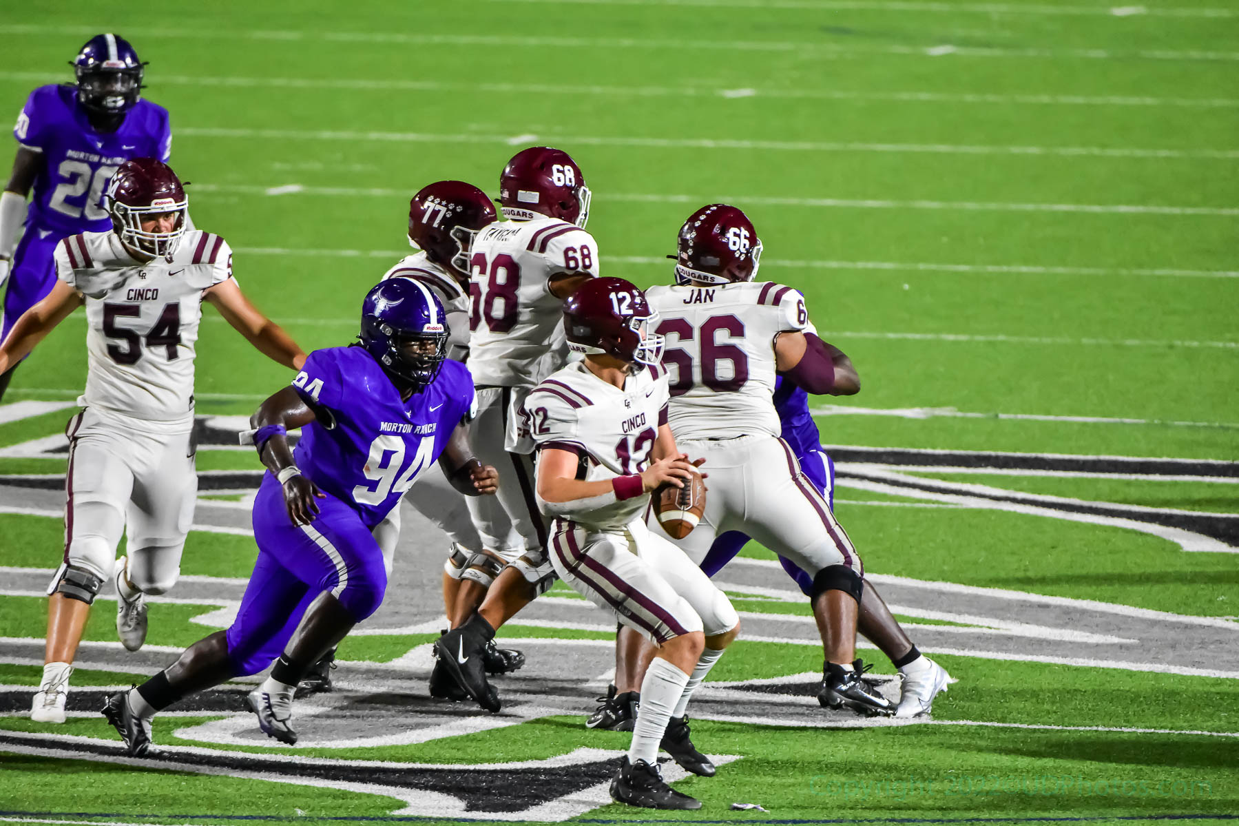 Thursday’s District 19-6A football game became an offensive bonanza by halftime as Cinco Ranch and Morton Ranch entered intermission tied, 35-35. In the final two quarters, the Mavericks continued to lead and pressured the Cougars to keep up.