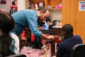 Having launched on September 26, the program comprises three after-school classes per week and one Saturday class per month throughout the year, with classes including large group, small group, and individual instruction. Students perform monthly for families and community members at the Fifth Ward’s DeLUXE Theater, as well as lobby concerts for at least one Houston Symphony Family Series Concert during the 2022–2023 season. The roster of teachers includes Houston Symphony Community-Embedded Musicians Rainel Joubert and David Connor, AFA Faculty Artists Samantha Arizpe and Emilio Arredondo, and Brenda Rengel Cardona.