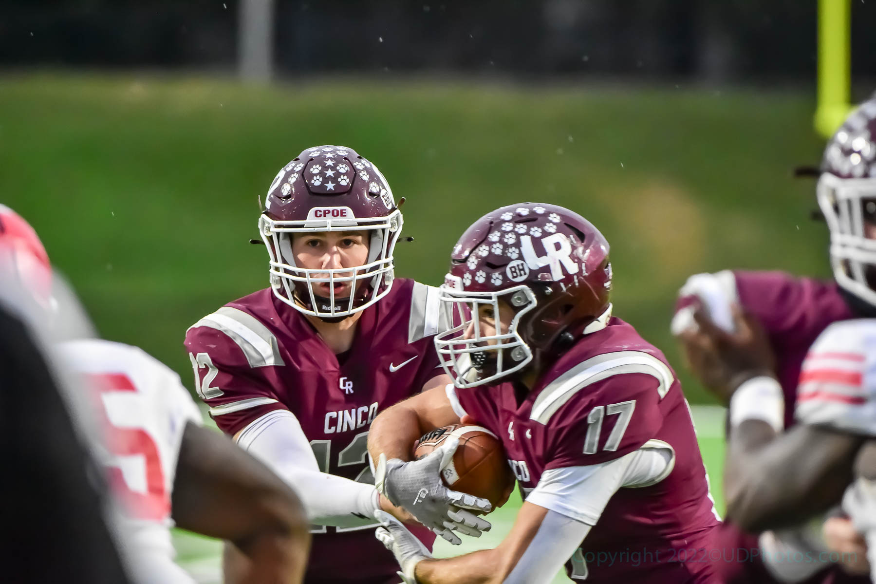 - Cougar QB Gavin Rutherford (12) and RB Eric Eckstrom (17) struggled against North Shore on the ground and through the air. Cinco Ranch lost to nationally-ranked North Shore, 49-21, on Friday. (Photo by Terry Carter/UDPhotos)