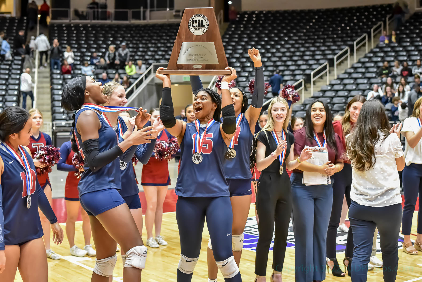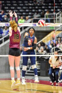 Playing against Keller in the state semifinals, Titley buried 18 kills to lead all hitters in the match and topping talented teammates senior Cindy Tchouangwa and junior Skylar Skrabanek. She rallied Tompkins several times and added 11 digs and two blocks as the Lady Falcons advanced against Keller, 3-2, in a close battle. Against Dripping Springs in the championship, Tchouangwa led Tompkins with 14 kills, and Titley added nine.