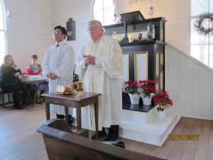 The church is a vernacular interpretation of the Gothic Revival style of architecture from the 19th century. The handmade cypress plank pews in the interior, original to the building, attest to the “can do” spirit that built this elegantly simple place of worship. It is oriented east to west in the park, with the altar at the east, as it was on its original site.