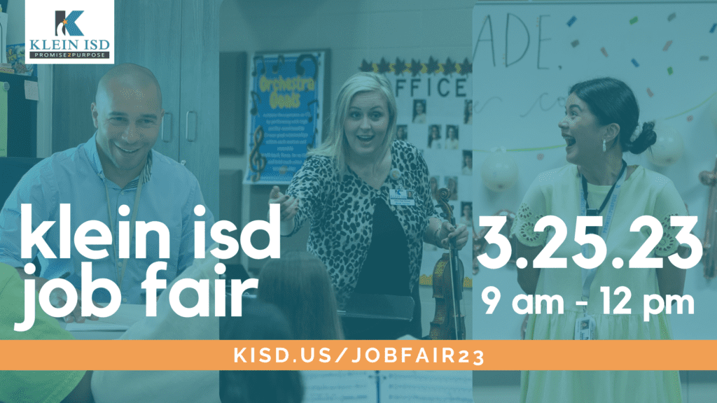 The event is an opportunity for individuals to meet with campus and district administrators, learn about the district’s competitive compensation packages, and apply for open positions. Letters of intent to join the Klein Family will be awarded at the job fair to selected applicants!