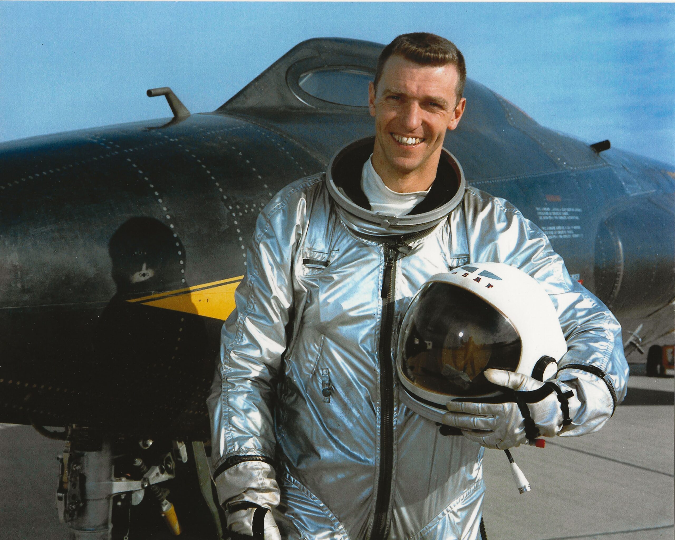 He served with the 474th Fighter Day Squadron flying F-100’s at George AFB, CA, and in 1960 was selected for the USAF Test Pilot School and the Aerospace Research Pilot School at Edwards AFB. In 1963 Engle was assigned as one of two Air Force test pilots to fly the X-15 Research Rocket aircraft, and on June 29, 1965, he flew the X-15 to an altitude of 280,600 feet and became the youngest pilot ever to qualify as an astronaut.