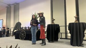 FBCA Junior Joana Liu was recently named a ‘Top Young Artist,’ and her artwork was awarded as a ‘Top Work of Art’ by the Houston Livestock Show and Rodeo School Art Program. Joana Liu was selected along with 72 other students out of 4,000 entries to advance to the Grand Champion and Reserve Champion level of judging. She ranked 25th out of the 72. Joana and FBCA Art Teacher, Mr. Ryan Baptiste, attended the HLSR School Art Program Awards Ceremony this past Saturday, February 11.