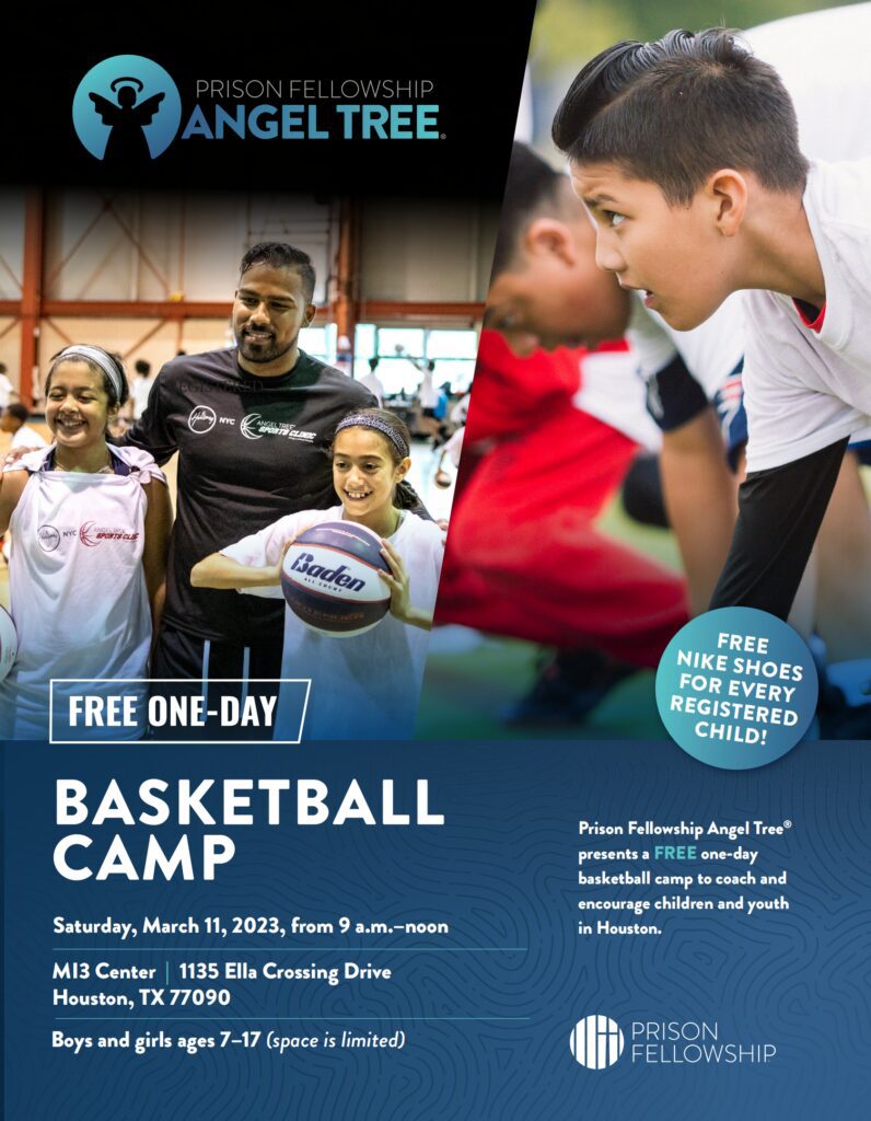 Prison Fellowship®, the nation’s largest Christian nonprofit serving prisoners, former prisoners, and their families, is conducting a free Angel Tree Sports Camp® that will benefit more than 250 kids, ages 7 to 17, at Houston’s MI3 Center on Saturday, March 11, 2030, beginning at 9:00am until noon.