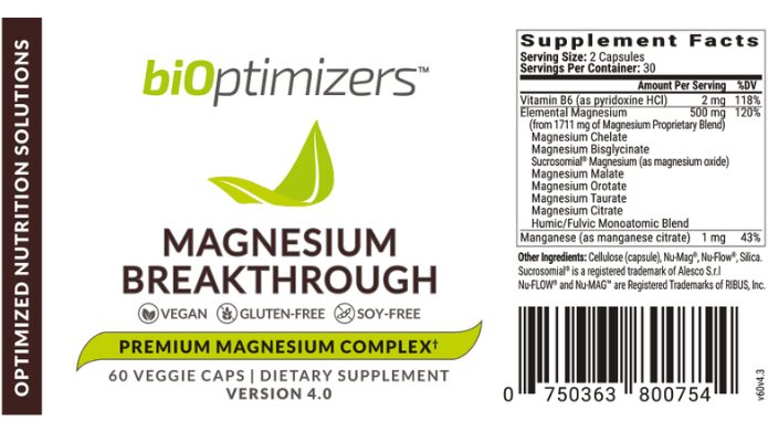 Breakthrough Magnesium Breakthrough is produced by Bioptimizers, which include sixty veggie capsules in each bottle. Wade T. Lightheart is the person who developed the Magnesium Breakthrough. Wade is a member of the American Anti-Cancer Institute and the founder of BiOptimizers.