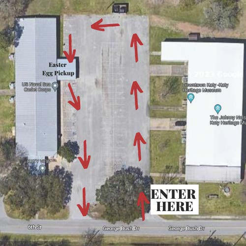 The City of Katy announced that because of the recent weather conditions the Katy area has experienced and the soggy current Katy City Park conditions, “Basket & Bunnies” has been moved to the VFW Parking Lot where a drive-through event has been organized. Mr. Bunny and friends will pass out Easter Eggs and goodies to the community. Please check out the attached map for the correct drive through route through the VFW Park.