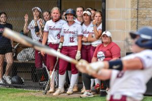 - The Tompkins dugout watches a fellow Lady Falcon take her cuts against Ridge Point on Friday. Tompkins rallied with a series of singles to take the lead midway through the game. (Photo by Terry Carter/UDPhotos)