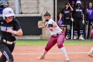 Tompkins center fielder Meagan Brown got a workout in tracking down shots to the outfield. She made spectacular catches, as did the Lady Falcons’ right fielder, at the wall on several occasions.