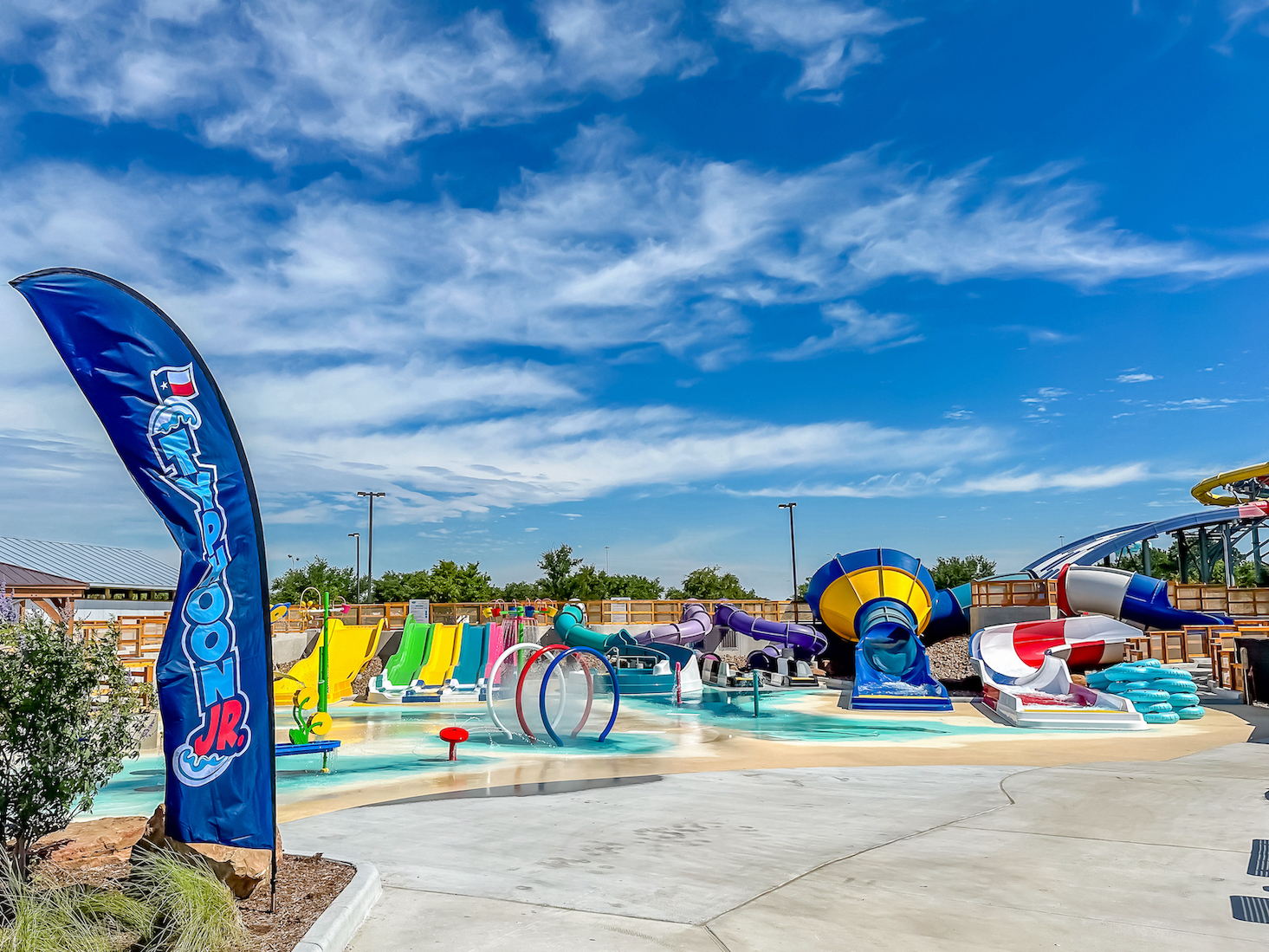 Typhoon Jr. waterslides, each carefully crafted to ensure safety and excitement for young guests, are open for children up to 54 inches tall.