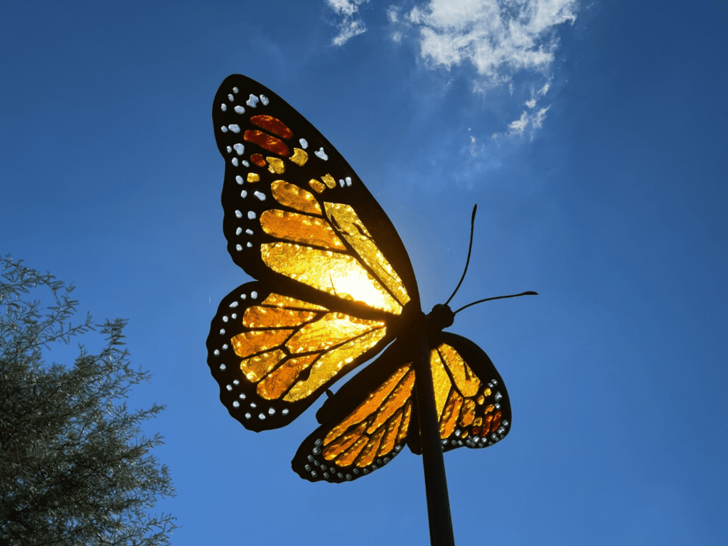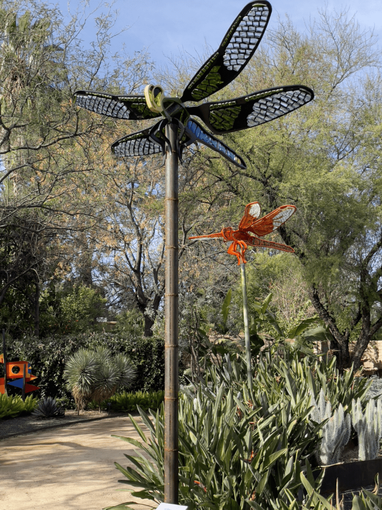 Heveri – who credits “biophilia” (love of life) and “entomophilia” (love of insects) as her muses – conceived, designed, cut, assembled, and welded the sparkling, realistic sculptures that premiered at the Tucson Botanical Gardens in 2022 and have now embarked on a journey to prestigious gardens, zoos, and museums across the United States.