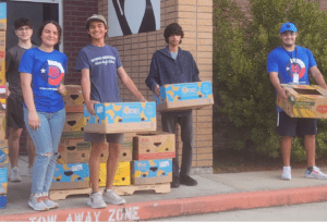 Several dozen volunteers from ExxonMobil Retirees, BI, SWATT, Boy Scouts of America Troop 1920, and individual volunteers loaded cars with milk, fruit, vegetables, and non-perishables.