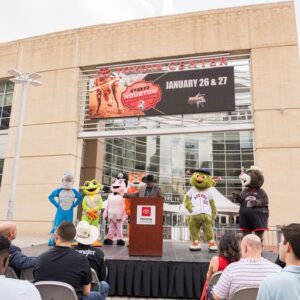 Photos from today’s press conference and mechanical bull riding competition, won by the Rockets’ Clutch, available here, courtesy Trish Badger. B-Roll, courtesy PBR, available here.