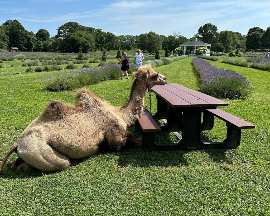Dr. Cabrera is especially enamored with his animals, as are his thousands of guests each year. Of the five privately held camels in Rhode Island, he owns three, all of which reside at Lavender Waves Farm. His Bactrian camel, Humphrey, was joined by dromedaries Jack and Bingham early in 2023. The camels are shockingly large but even-tempered and can be rented for use at events, with camel rides to come as a future endeavor. Chickens, ducks, peacocks, llamas, alpacas, and a Great Dane all keep the camels company and bring life to Lavender Waves.