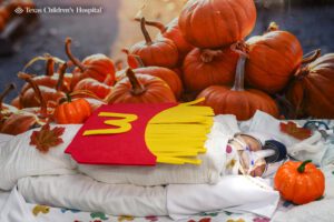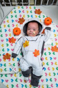 Since they won’t be able go door-to-door this year, we brought the treats to them! Babies in the Neonatal Intensive Care Unit at Texas Children’s participated in a precious photo shoot, hamming it up for the camera dressed as french fries, an astronaut, and even a tiny turtle, coordinated by Child Life Specialists to help babies and their families get in the spirit of the season.