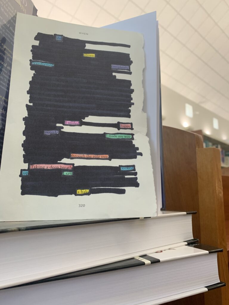 Since the words for blackout poems are already written on the page, it’s up to the blackout poet to bring new meaning and life to these words. Blackout poems can run the gamut from absurd to sublime because the poet can only work with the words that are already there on the page, but the randomness is all part of the fun! A poem may live within the words and lines of any page, just waiting for a poet to discover it!