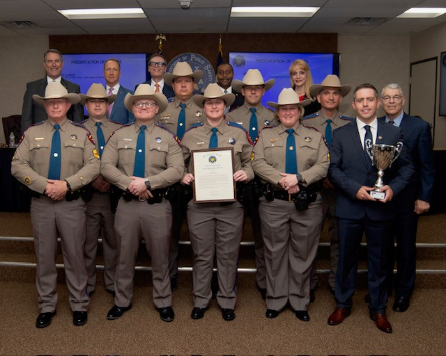 Since its inception in 2014, the DPS Pipe and Drum Corps has played a significant role in adding solemness and respect to important occasions by performing at line-of-duty funerals, official ceremonies and other important events. Texas Highway Patrol Sergeants and Troopers who are members of the Pipe and Drum Corps balance the demands of their regular duties in addition to practicing hours, weeks, months or even years to achieve a high level of precision and musicality in their performance. Over the years, the Pipe and Drum Corps has performed at eight DPS commissioned personnel line-of-duty funerals, 14 line-of-duty funerals for other Texas law enforcement agencies and public officials, three United States Judge Investiture ceremonies, 22 recruit graduations, numerous memorial events, opening ceremonies for State and National Law Enforcement Association conferences, Dallas Cowboys football games and the Houston and Fort Worth rodeos. In 2019, the Corps received 5th place at the National Police Week Pipe and Drum competition in Washington, D.C. and took 3rd place in 2022. In recognition of their hard work and dedication, the Pipe and Drum Corps—including Commander Sergeant Terry Barnhill (New Caney); Sergeants Kenneth Morgan (Kerrville) and Tamela Snider (Crockett); Special Agent Tyler Morton (Capitol); and Troopers Harold Estep (San Antonio), Christopher Taylor (Houston), Joel Hanks (Bonham), Michael McHale (Port Lavaca), Cory Countryman (Capitol), Joseph Sherman (Corsicana), Shirley McNally (Capitol), Alena Gallardo (Capitol) and Ricka McKee (Abilene)—is awarded the Unit Citation.