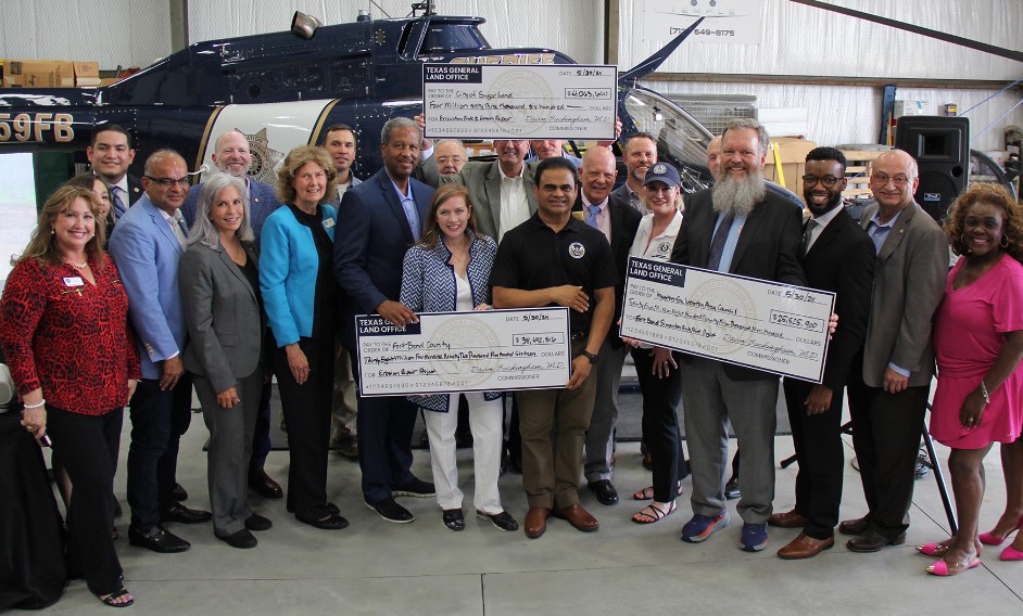 SUGAR LAND, TX —Texas Land Commissioner Dawn Buckingham, M.D., delivered three checks totaling $68,382,016 for Brazos River erosion repair projects in Simonton and the City of Sugar Land on Thursday. The funding is the culmination of years of work by Fort Bend County Pct. 3 Commissioner Andy Meyers and partners at the Houston–Galveston Area Council.