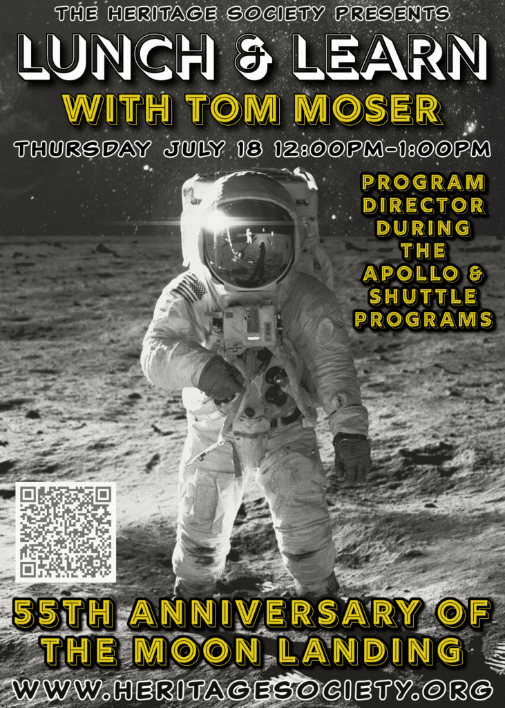 Houston, July 16: July 20 marks the 55th Anniversary of the Apollo 11 mission. To celebrate Space City, The Heritage Society is hosting a presentation by former NASA and Johnson Space Center expert, Tom Moser, at a lunch-and-learn at noon, on Thursday, July 18, at 1100 Bagby Street.