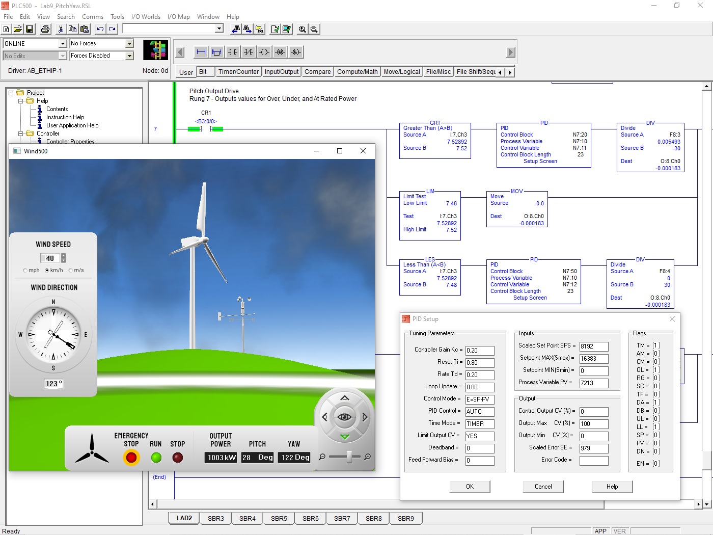 - Pitch and Yaw Ladder Logic Applications: Illustrates how Programmable Logic Controllers (PLCs) are used to provide automatic control of wind turbines.
