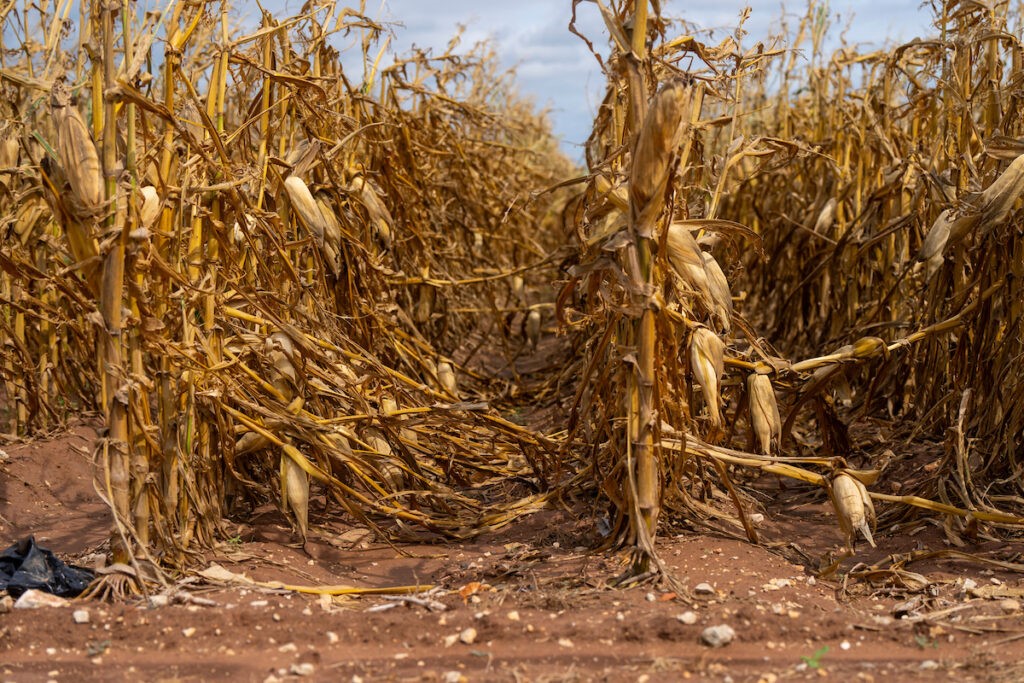 Flattened corn stalks were found in many fields in the path of Hurricane Beryl on July 8. (Michael Miller/Texas A&M AgriLife)