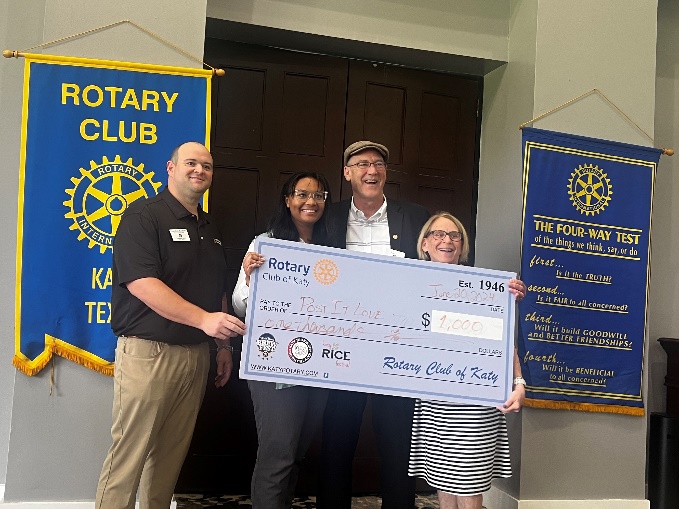 Each charity was selected for their dedication to serving the community and their alignment with the Rotary Club of Katy’s mission of “Service Above Self.” The funds will aid these organizations in continuing their valuable work, from providing shelter and support to those in need, to enriching lives through the arts and education.
