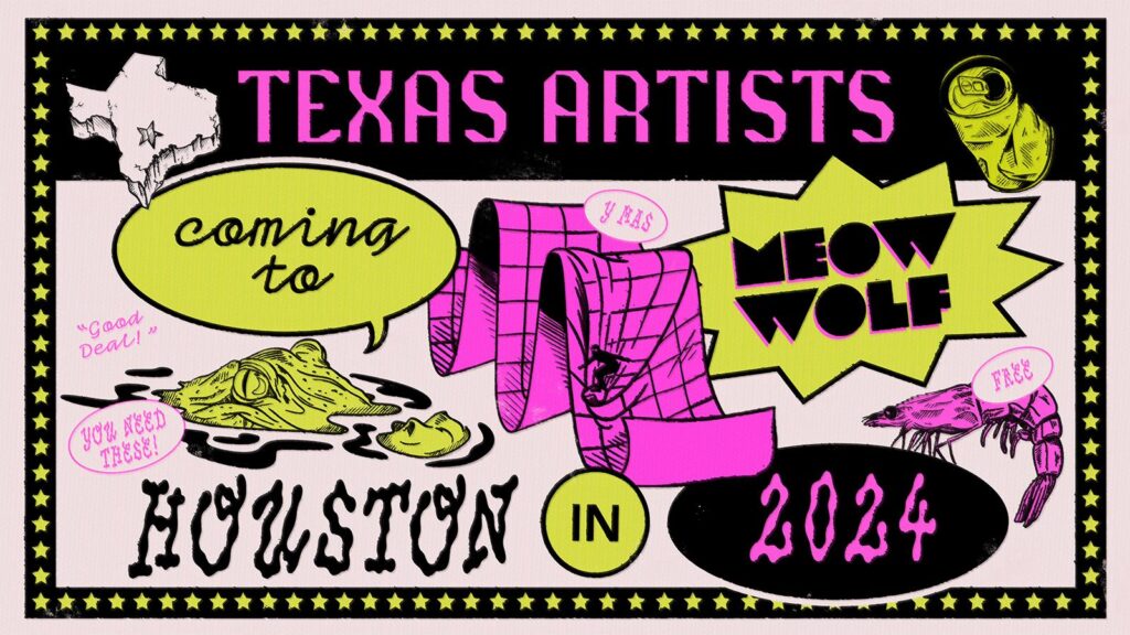 Langford, a visionary artist known for her intricate world-building and retro-futuristic illustrations, brings her signature blend of fantastical comic book narratives and deep personal introspection to this new Houston installation. Drawing on her experiences as a woman of color and an artist, Langford’s work continues to forge spaces of beauty where her characters can shine. Langford has also collaborated with Meow Wolf on a capsule collection featuring Obsidiopolis ranging from art prints, shirts, and more. The new collection can be found at obsidiopolis.com.