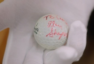In 1971, famed astronaut Alan Shepard returned from the moon and went to get a haircut. Before settling into the barber’s chair in Webster, Texas, near NASA’s Mission Control, Shepard gave his longtime barber and friend, Carlos Villagomez, an autographed golf ball. During his Apollo 14 moonwalk just days earlier, Shepard conducted a world-famous demonstration of gravity by hitting a golf ball in an out-of-this-world sand trap. It took him two tries. Carlos, a Navy combat veteran and barber for numerous astronauts, says Shepard gave him the ball immediately after he returned to earth and was released from quarantine.