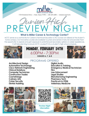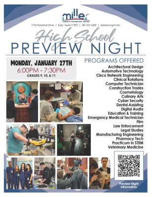 | What: | Katy ISD’s Miller Career & Technology Center Preview Nights