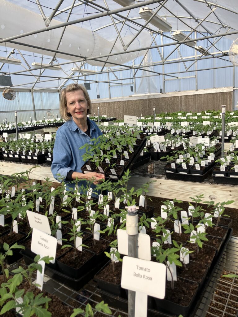 Fort Bend County Master Gardener Deb Volkers of Richmond holds a tray of Chef’s Choice transplants in the Rosenberg greenhouse where Master Gardeners have been growing plants for their March 8 sale.