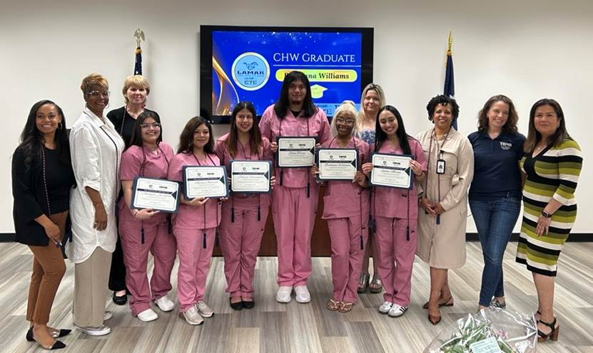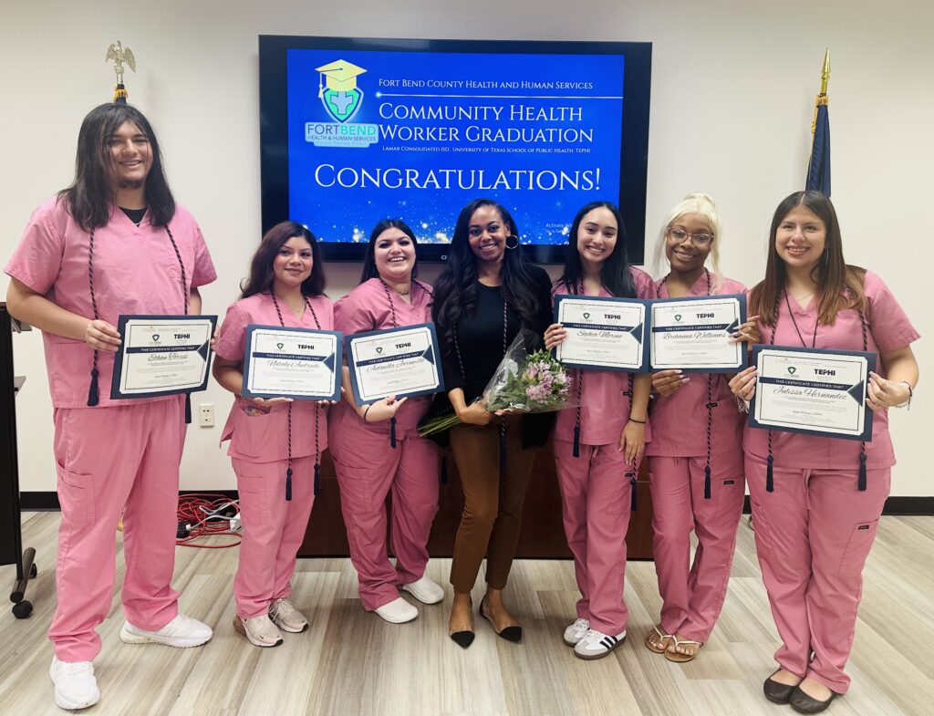 This spring, Fort Bend County Health and Human Services, in partnership with Lamar Consolidated High School’s Health Science CTE program, proudly graduated its first-ever cohort of Community Health Workers (CHWs) on Thursday May 8, 2025 — an achievement made possible through a strategic partnership between Lamar Consolidated ISD CTE (LCISD), Fort Bend County Health & Human Services (FBCHHS), the unwavering support of Precinct 4 Commissioner Dexter McCoy and the UT School of Public Health’s Texas Epidemic Public Health Institute (TEPHI) as an Academic Public Health Department partner.