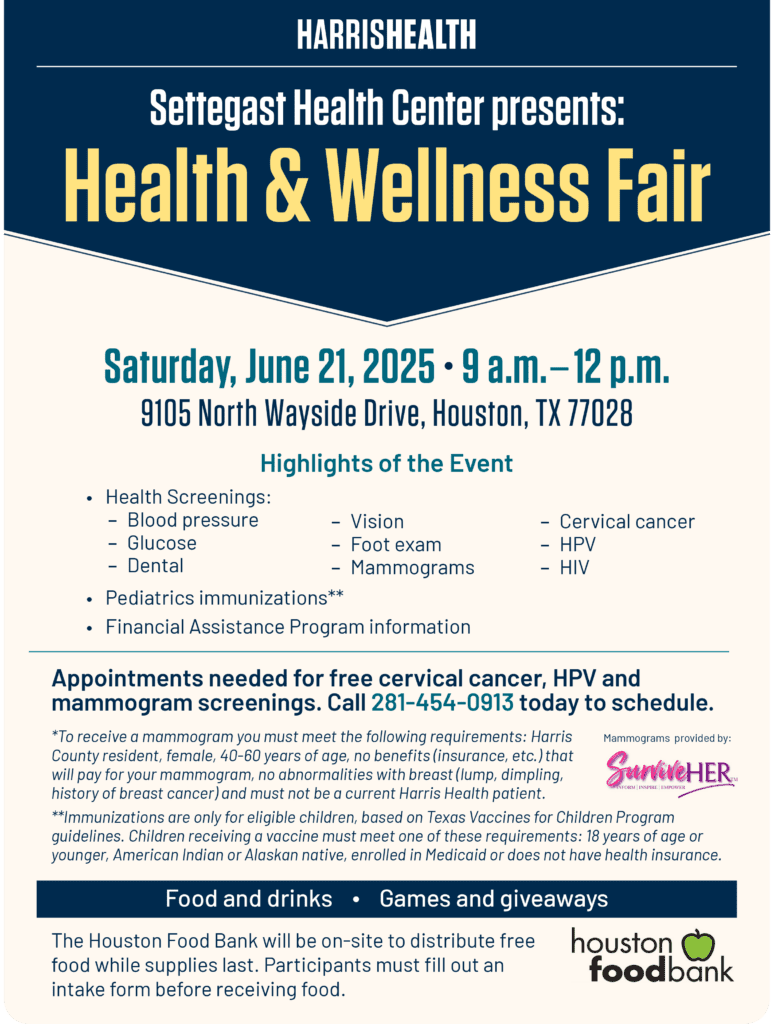 WHAT: Harris Health will host a Health and Wellness Fair at Harris Health Settegast Health Center on Saturday, June 21, 2025.