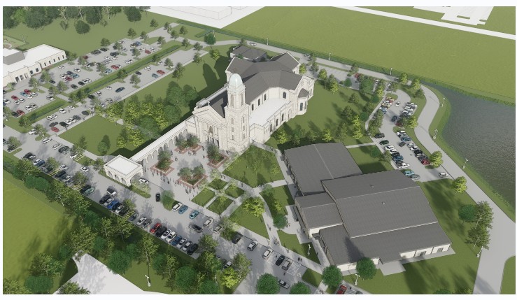 Designed in a traditional cruciform style by Jackson & Ryan architects, the new church will increase capacity from 1,300 seats in their current church building to 2,000 seats. It will also include a 49-seat perpetual adoration chapel, bell tower, plaza for community gathering, and expanded parking.